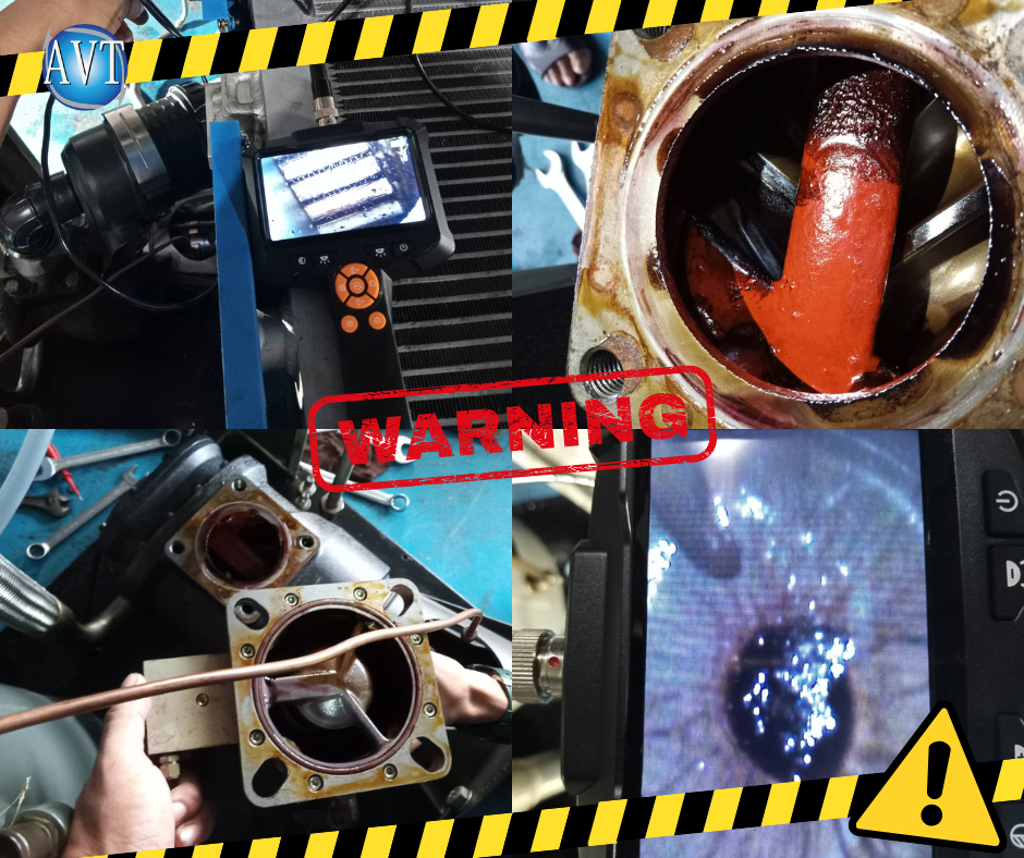 - Oil discoloration, sediment/sludge, abnormal viscosity, and a foul odor in the oil.