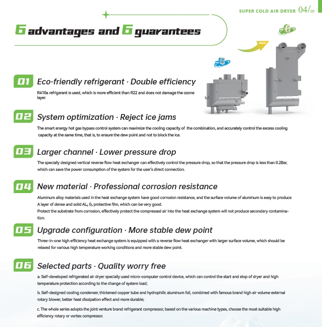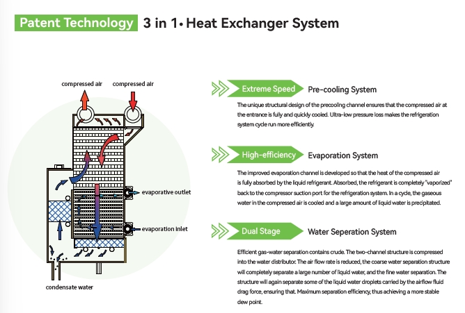 The improved evaporation channel is developed so that the heat of the compressed air is fully absorbed by the liquid refrigerant.